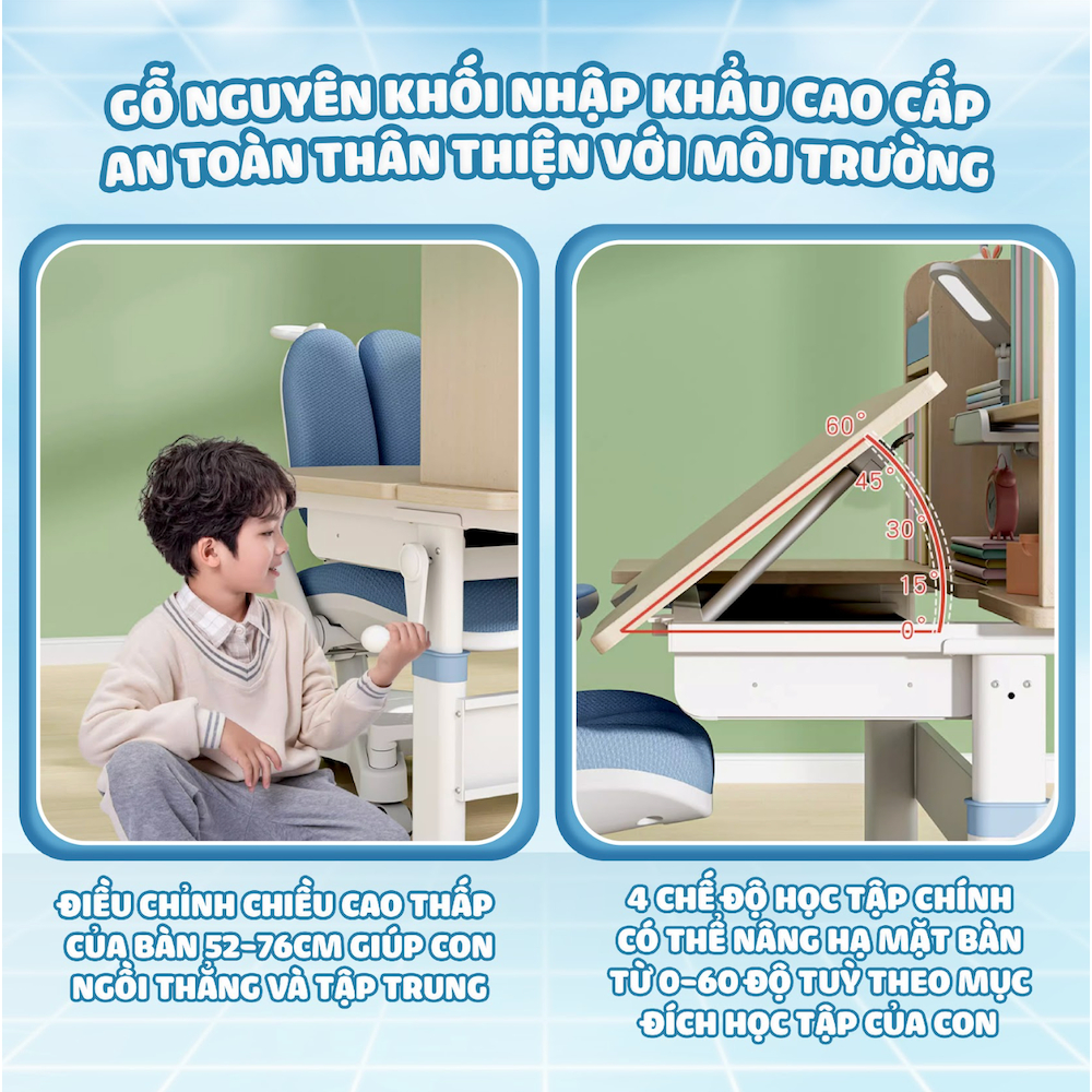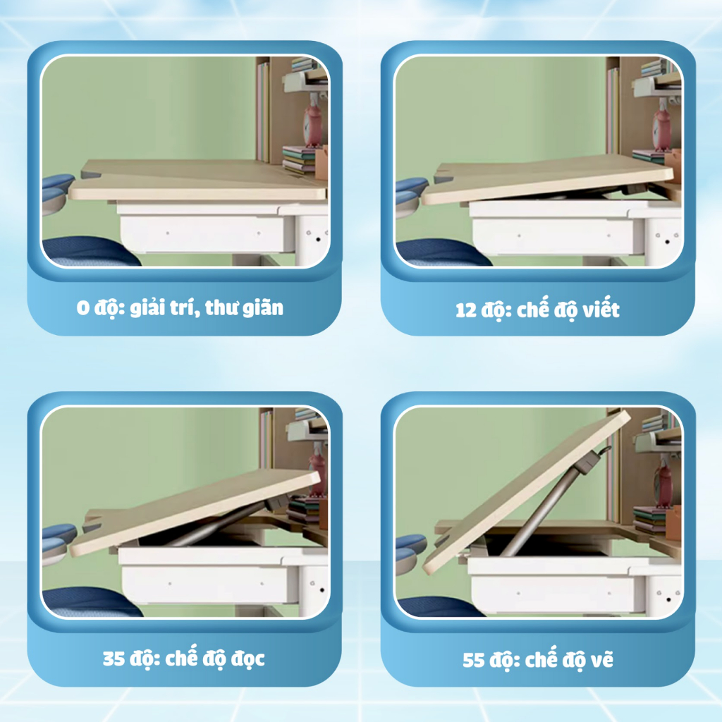 – Chống gù, chống cận do bàn có thể điều chỉnh góc nghiêng, tối ưu khoảng cách từ mắt tới mặt bàn