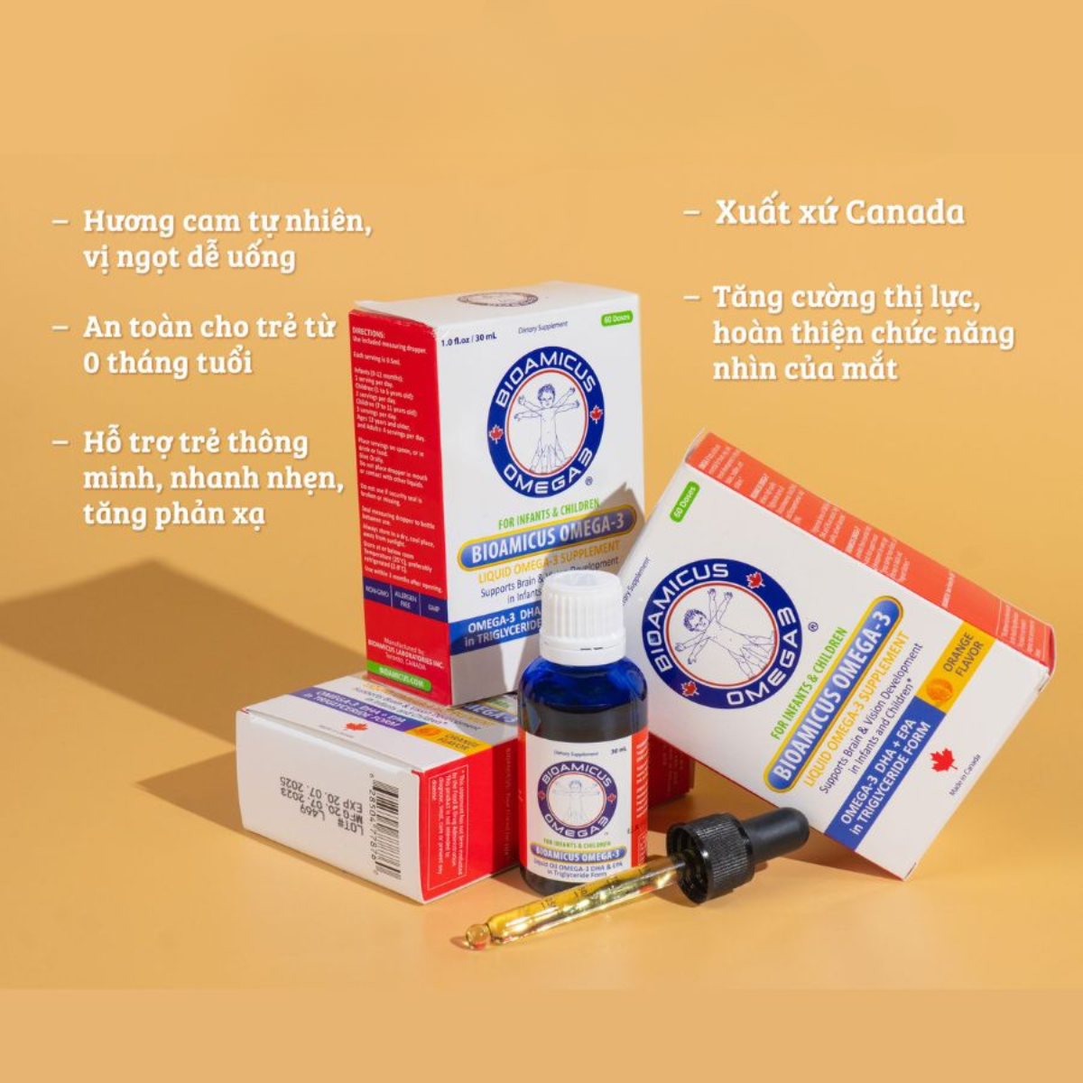 BioAmicus DHA 30mL nhập khẩu nguyên hộp từ Canada hỗ trợ trẻ sáng mắt, thông minh, nhanh nhẹn