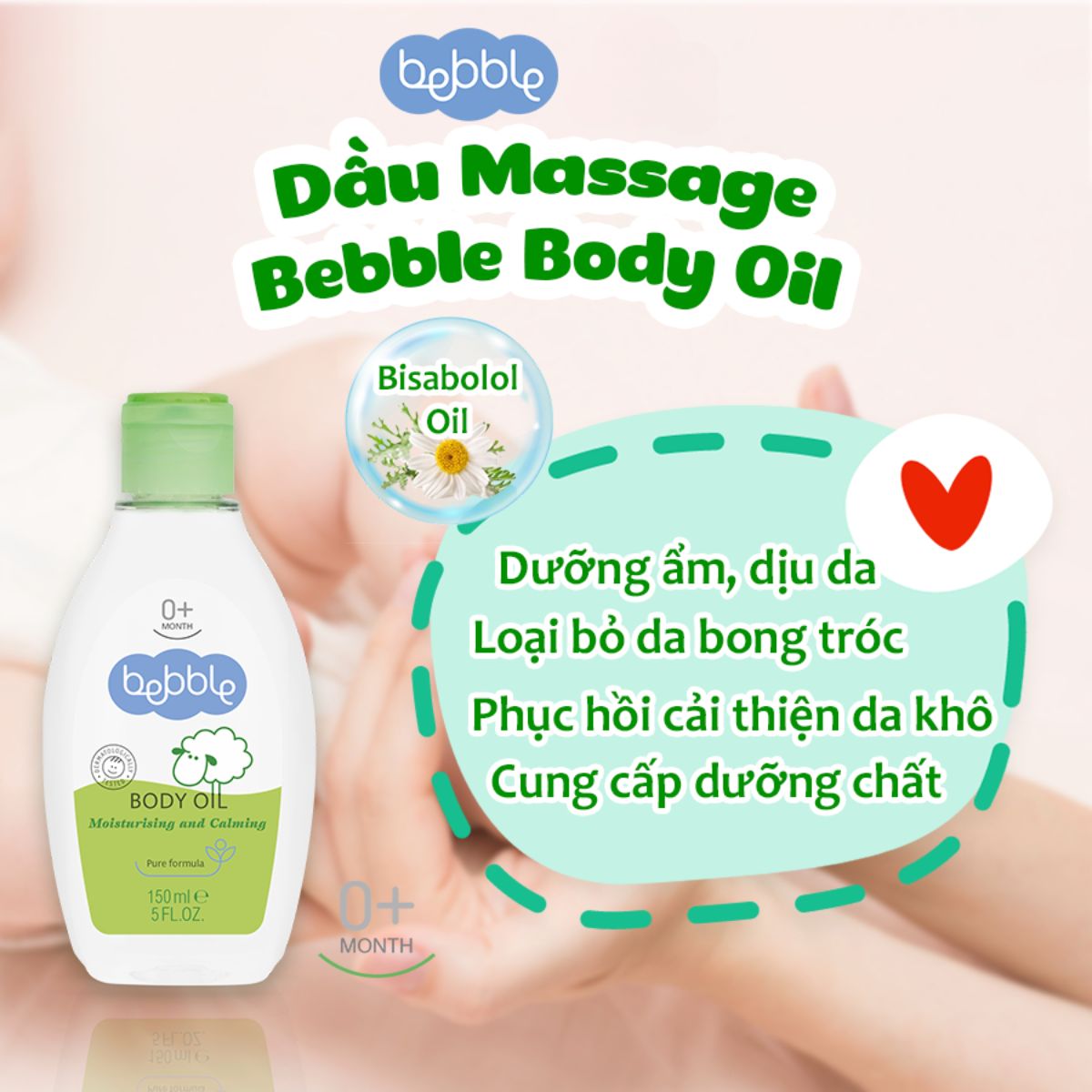 – Sử dụng dầu Massage Bebble Body Oil giúp tăng sự phát triển toàn diện cho bé