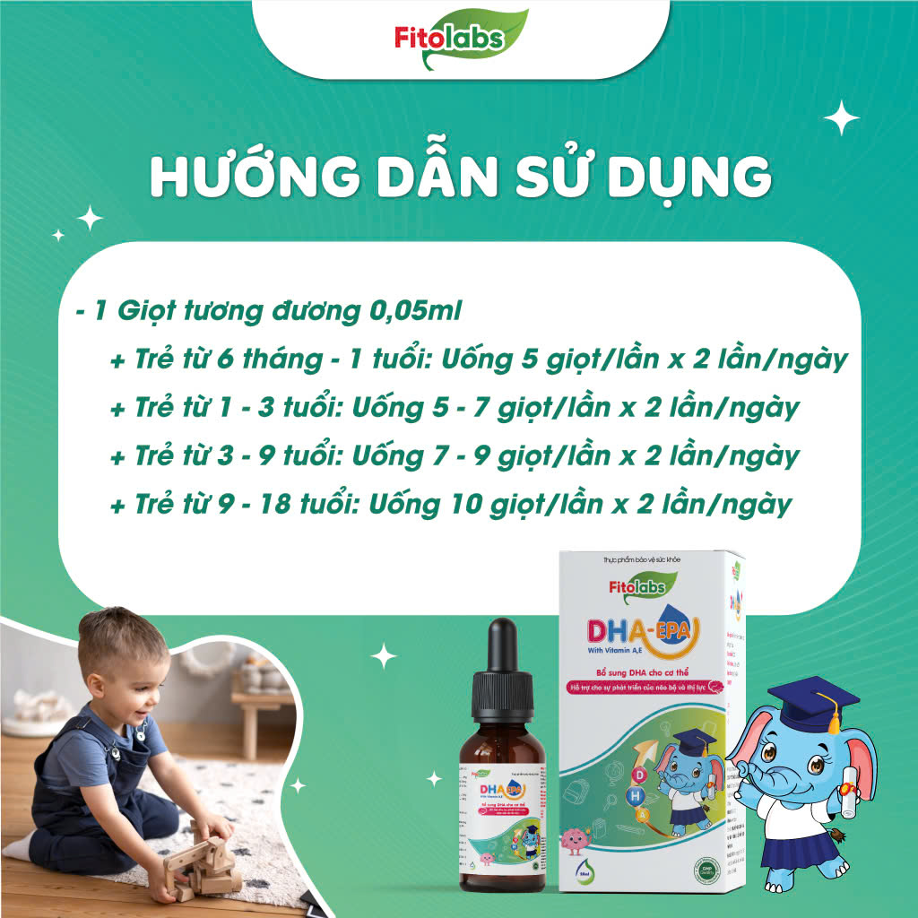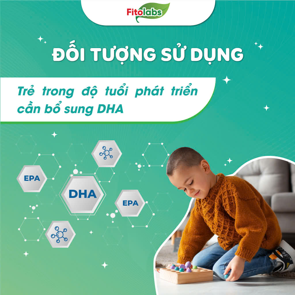 - Sản phẩm Fitolabs DHA- EPA đặc biệt cần thiết cho trẻ em trong độ tuổi phát triển từ 0 – 12 tuổi