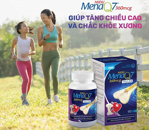 Midu MenaQ7 360mcg – Hỗ trợ chắc khỏe xương và phát triển chiều cao cho trẻ dậy thì với Trucal và Vitamin K2 hàm lượng cao. Cùng với hàm lượng cao Vitamin D3 giúp calci từ ruột vào máu và Vitamin K2 giúp gắn calci vào xương.