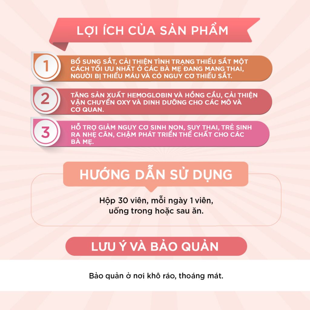 - Không còn lo bị táo sau khi bổ sung sắt: Có sự kết hợp độc đáo giúp tăng hấp thu sắt, không lo bị táo.